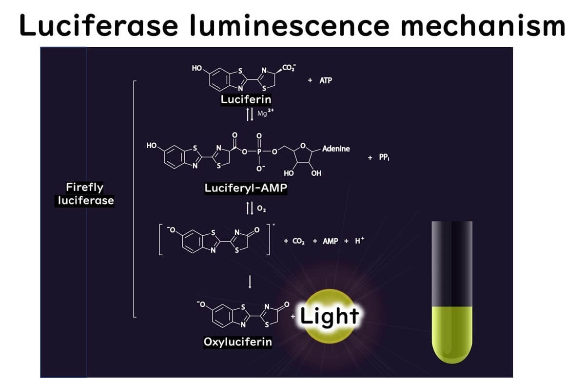 This reaction forms the foundation for ATP measurement, as the light emitted is proportional to the ATP concentration.