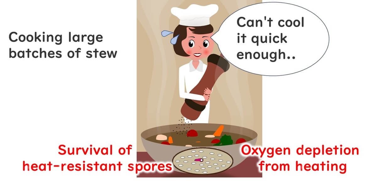 Slow cooling creates conditions that encourage C. perfringens to thrive.