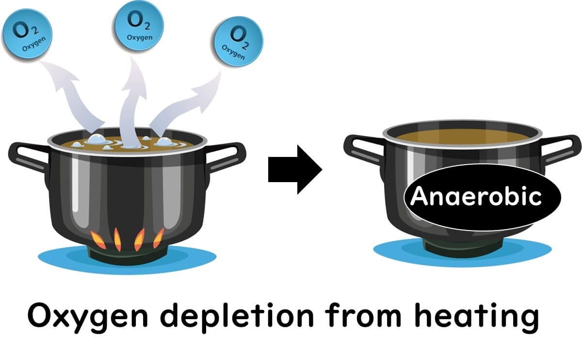 Boiling drives out dissolved gases from soups and stews, creating oxygen-free conditions perfect for bacterial growth (a phenomenon known as "degassing").