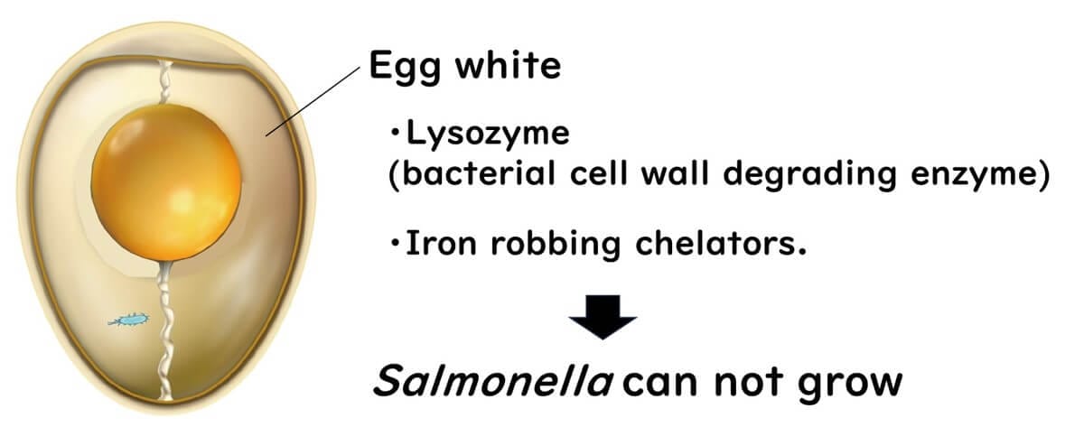 Why does Salmonella not multiply significantly within the egg during distribution? The answer lies in the egg white, which contains natural antibacterial substances. These include lysozyme, an enzyme that dissolves bacterial cell walls, and compounds that chelate iron—a nutrient essential for bacterial growth. These protective factors make it difficult for Salmonella to proliferate, even if contamination occurs.