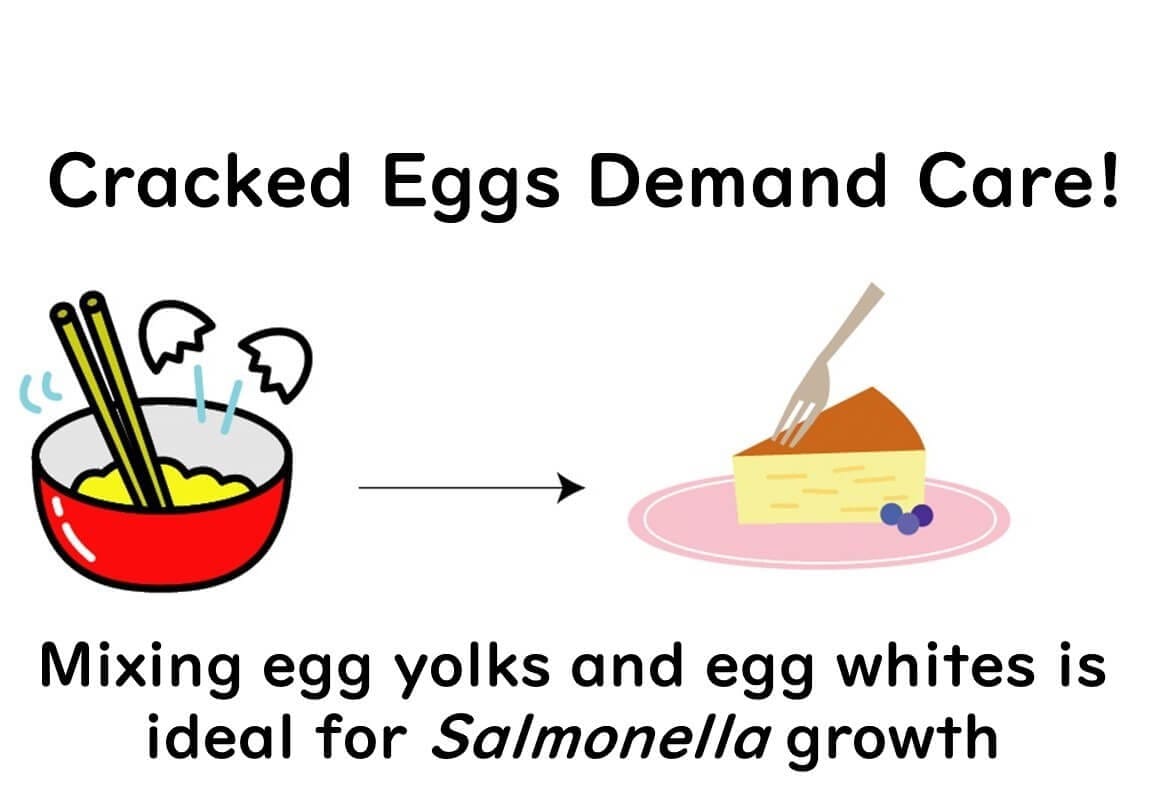 If Salmonella contamination is on the eggshell, cross-contamination can easily occur. Therefore, careful egg handling and hygiene are essential when preparing foods that use raw or lightly cooked eggs.