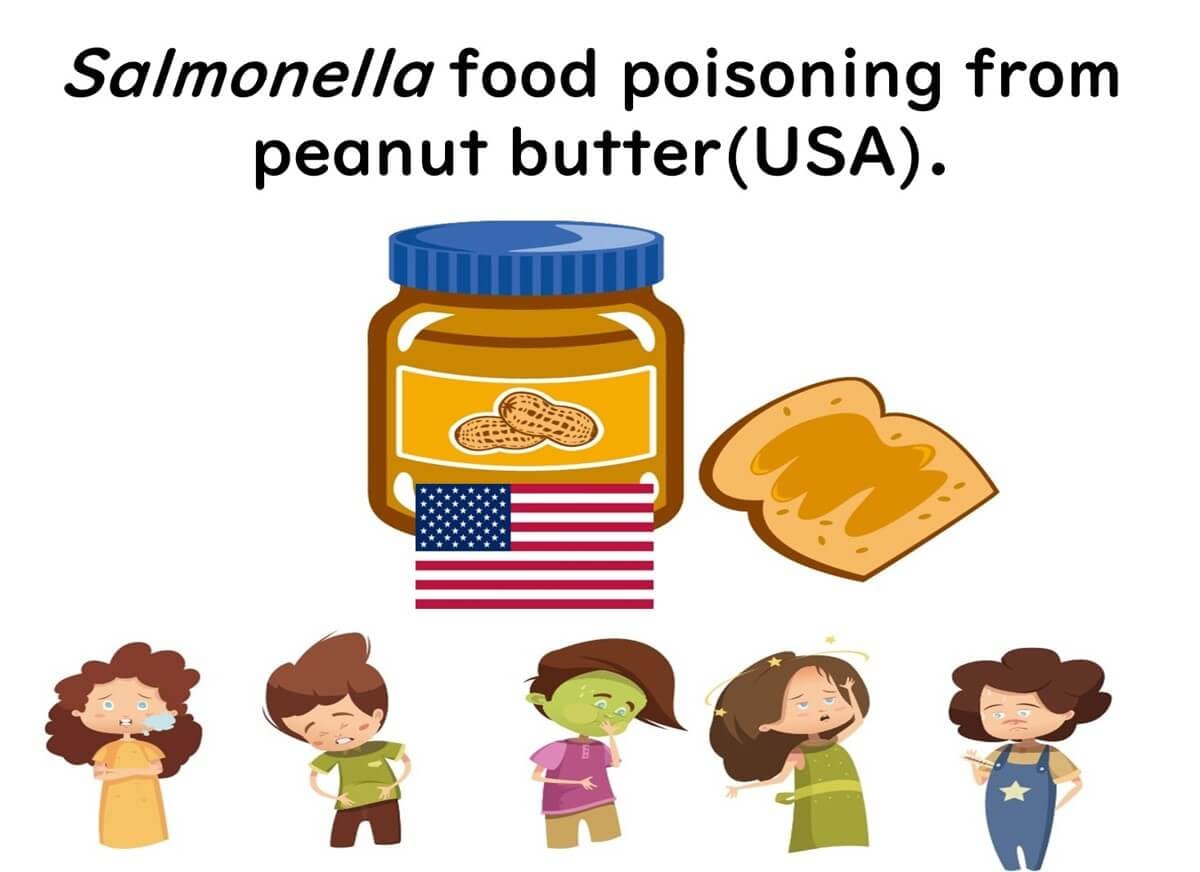 In the U.S., Salmonella contamination incidents have been reported with peanut butter, a product with a low water activity of around 0.35, illustrating the bacterium's ability to survive in dry conditions.
