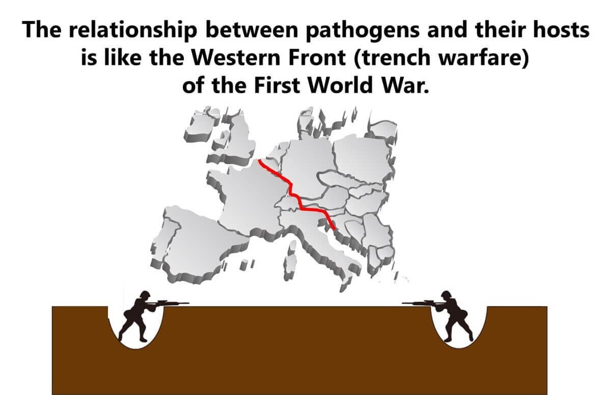 The relationship between pathogens and their hosts resembles the Western Front of World War I.