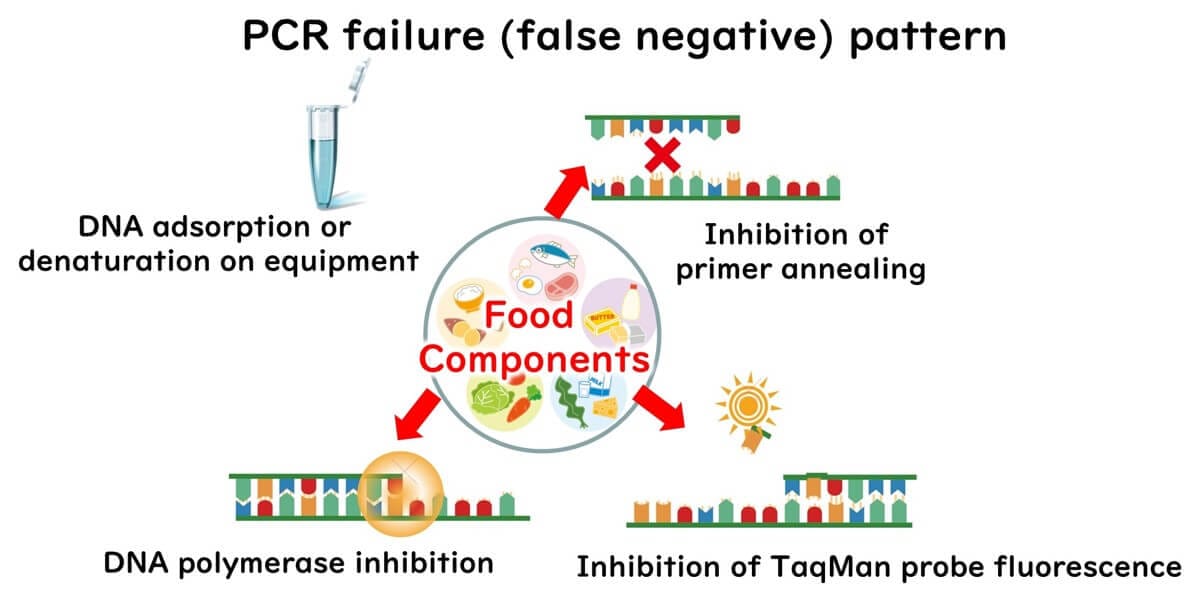 Inhibition of DNA Polymerase: The enzymatic activity of DNA polymerase may be disrupted by certain inhibitors present in the food matrix.