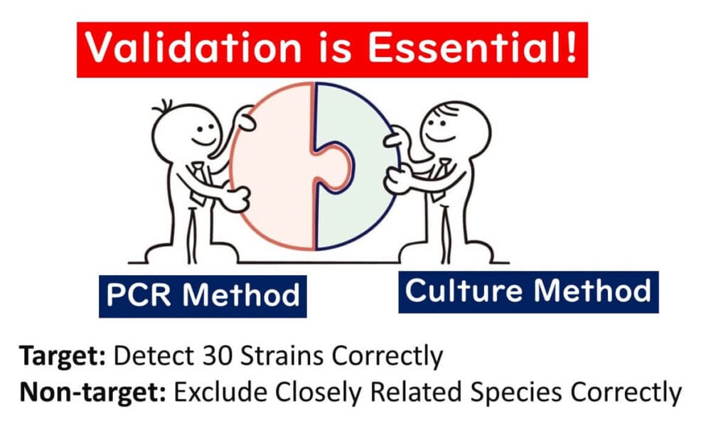 As discussed in this article, PCR testing in food microbiology presents inherent risks. To mitigate these risks and ensure accuracy, a robust validation process is indispensable. Validation involves extensive testing with multiple strains to confirm both the sensitivity and specificity of the method.