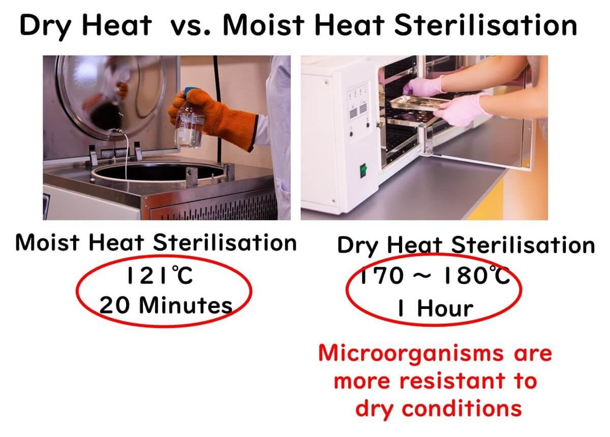 In contrast, dry heat sterilisation resembles the sauna environment. Even at 160°C, the dry air transfers heat more slowly, allowing microbes to withstand the high temperature longer. This explains why moisture content plays a critical role in the efficiency of sterilisation methods.