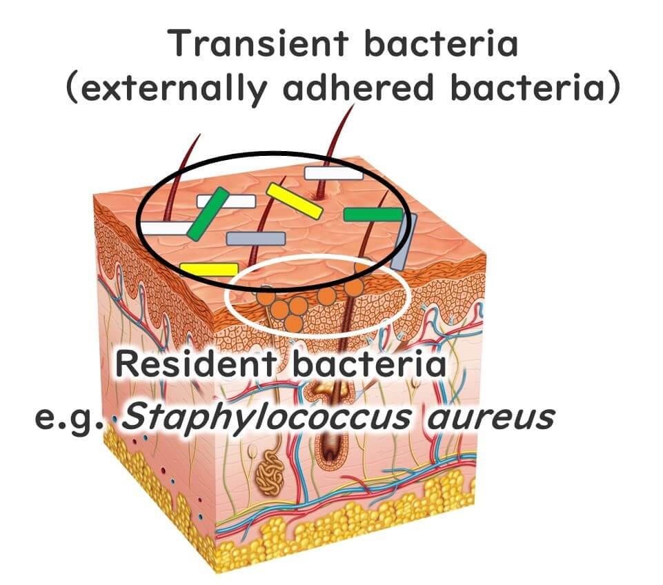 Resident bacteria are not confined to the surface of the skin; they also inhabit deeper layers, such as hair follicles. As a result, they are not easily removed, even with thorough handwashing.