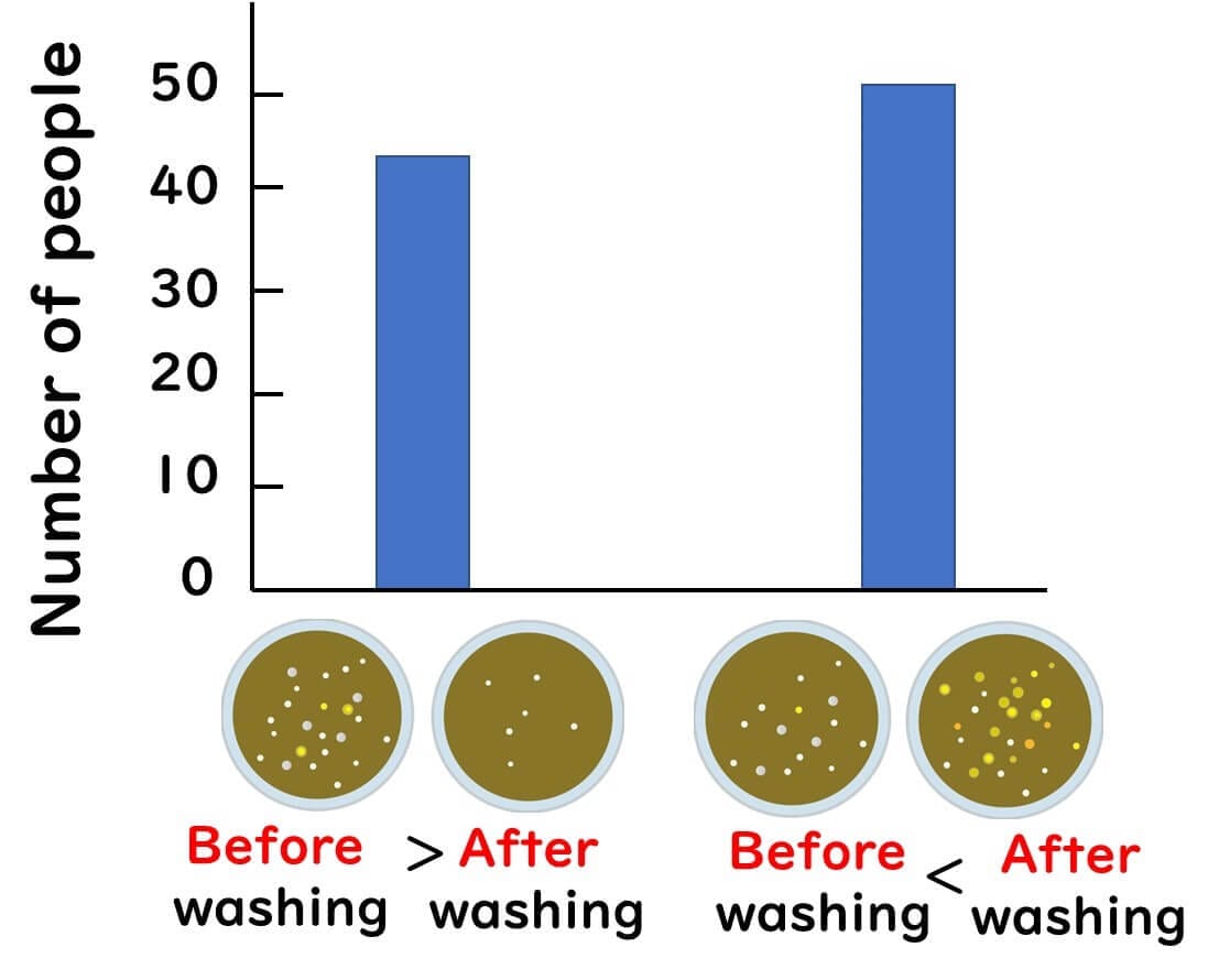 In my university classes, I conduct an annual experiment with students to measure the number of microbes on their hands before and after washing, using the plate culture method. Over the course of 10 years, we observed a surprising result: in some cases, the number of bacteria on their hands actually increased after washing.
