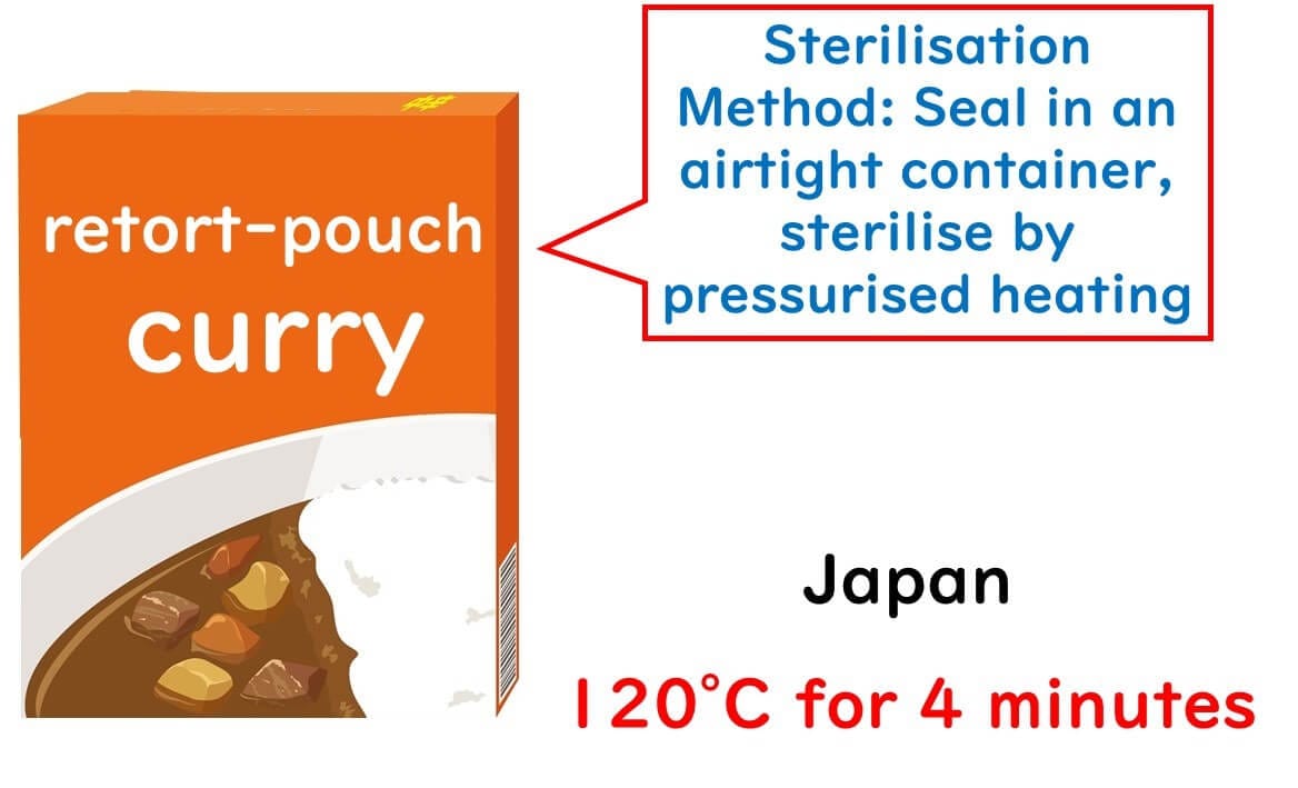 On the other hand, Japanese food sanitation laws specify a heat treatment equivalent to 120°C for 4 minutes.