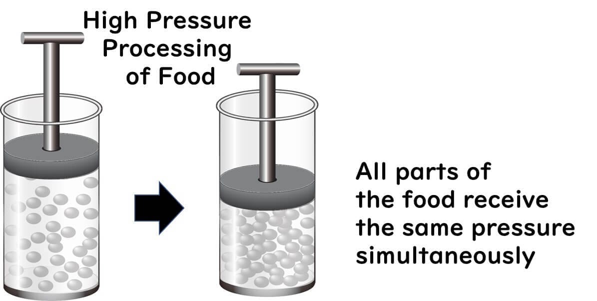 High-Pressure Processing (HPP) is a non-thermal treatment that applies uniform isotropic pressure to both solid and liquid foods. The pressure is distributed quickly and evenly, ensuring all parts of the food are exposed simultaneously.