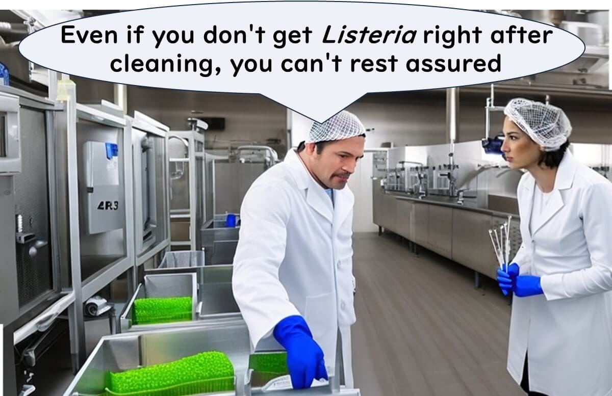 That said, post-cleaning swabs can indicate failure if Listeria is found. However, negative results should not provide false reassurance.