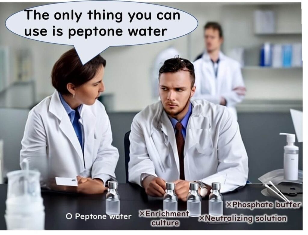 Sterilise by autoclaving at 121°C for 15 minutes. Do not use phosphate-buffered diluents or enrichment broths (e.g. Fraser) as these can interfere with detection or encourage environmental growth of Listeria.