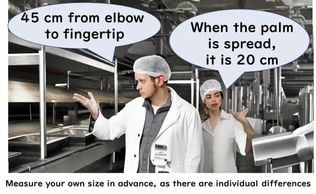 Instead, use body-based references: middle finger to elbow (~45 cm) or spread hand (~20 cm).
