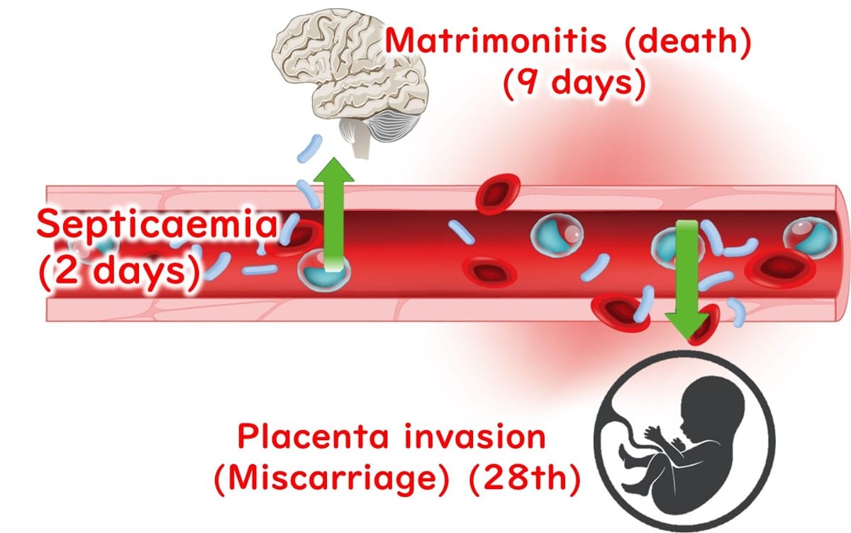 Pregnant Women: L. monocytogenes can cross the placental barrier, taking up to three weeks to cause complications such as neonatal infections or miscarriage. This delay is attributed to the time required for the bacteria to breach the fetal membranes and invade the amniotic fluid.