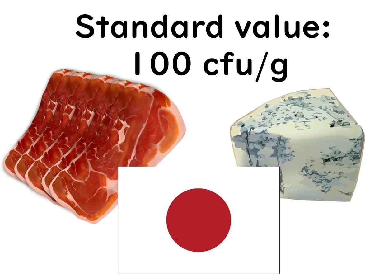 Japan’s Ministry of Health, Labour and Welfare decided to apply point 3 to natural cheeses and non-heat-treated meat products due to the uncertainty about whether these foods can completely inhibit L. monocytogenes growth. As a result, manufacturers are required to ensure that the concentration remains below 100 CFU/g at the time of consumption.