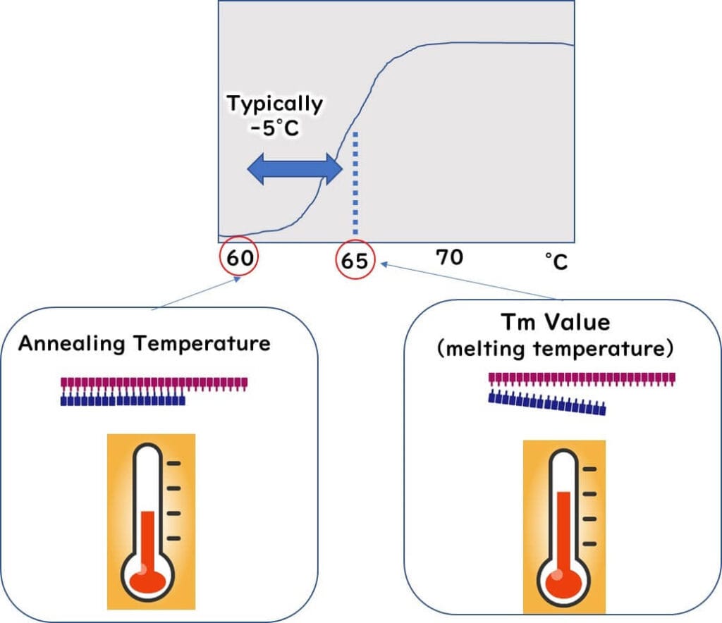 In PCR reactions, the target DNA, which has been dissociated into single strands during the heat denaturation process, must rebind during the annealing phase. During this phase, primers that serve as starting points for extending the target sequence must also bind to the target DNA.