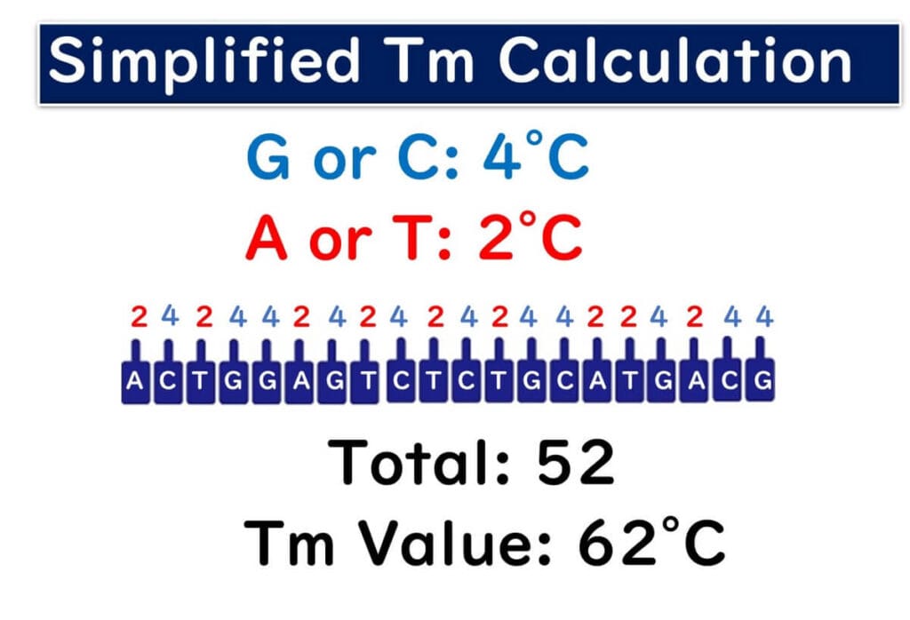 Various formulas exist for calculating Tm values. Below is the simplest manual calculation method: