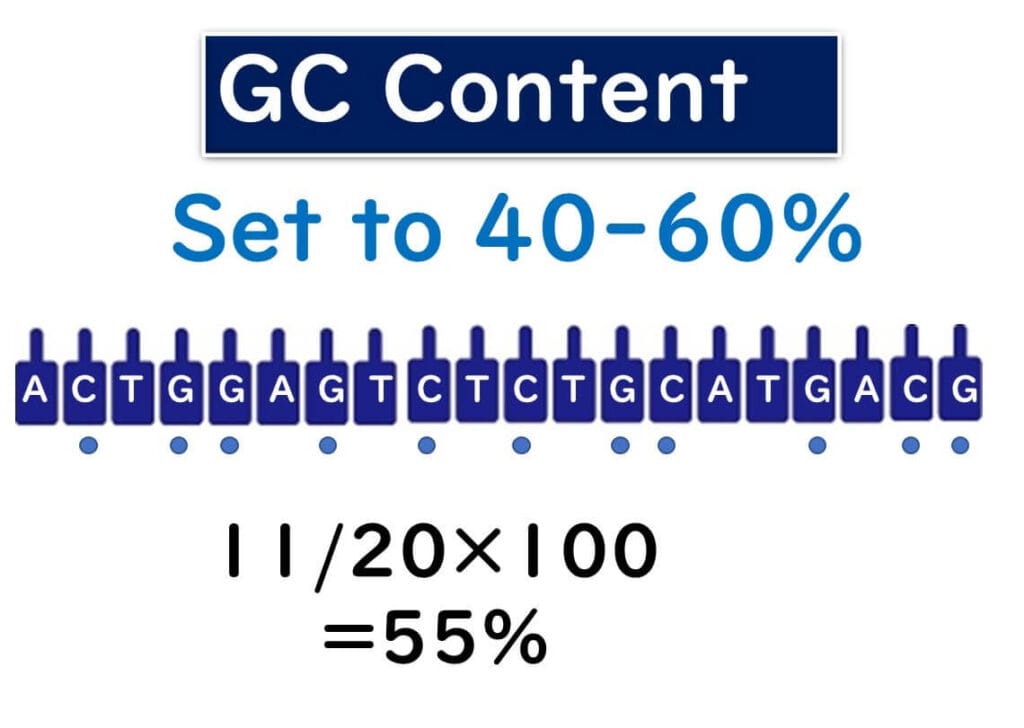 Overall GC content: Maintain the recommended 40-60% range.