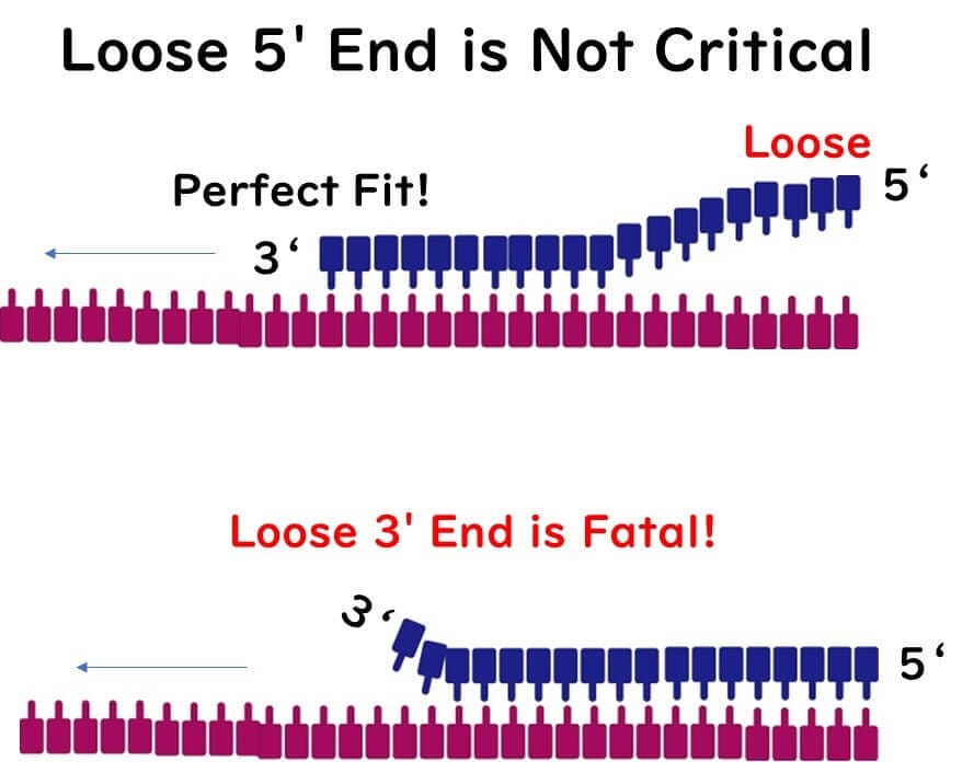 Conversely, the 5' end of the primer can tolerate a higher content of A or T bases. As long as the 3' end remains stable, the extension reaction will proceed efficiently.