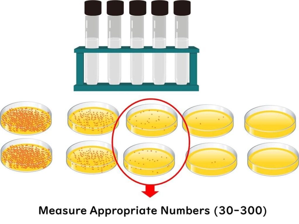 To figure out the original number of live bacteria in your sample, count the colonies that are just right—not too many, not too few—in a dish. Typically, you’ll pick a plate showing 30 to 300 colonies for the most reliable count.