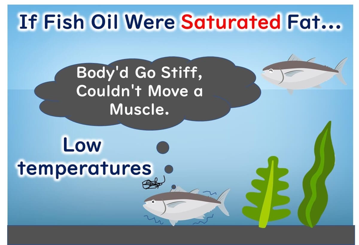 Fish fat, rich in unsaturated fatty acids, remains liquid even in refrigerated conditions. This adaptation allows fish to transition between warm surface waters (25°C) and cold deep-sea environments (below 10°C) without their fatty acids solidifying and disrupting mobility.