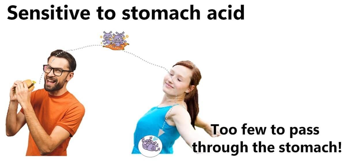 Since foodborne bacteria are vulnerable to stomach acid, they need to enter our bodies with food in order to survive and multiply.