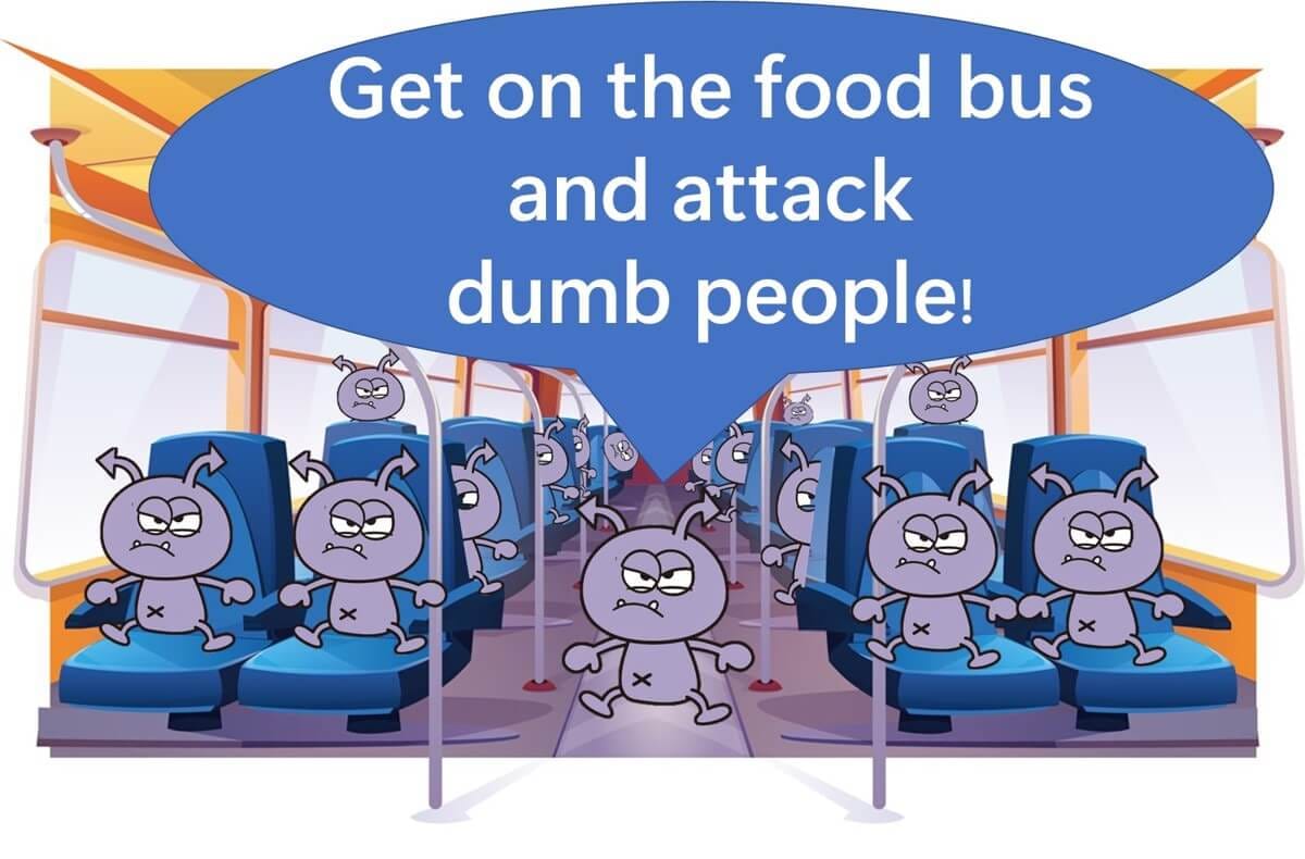 Think of food as a bus carrying a large number of bacteria. For these bacteria to cause an infection, they must board the “food bus” to enter our bodies.