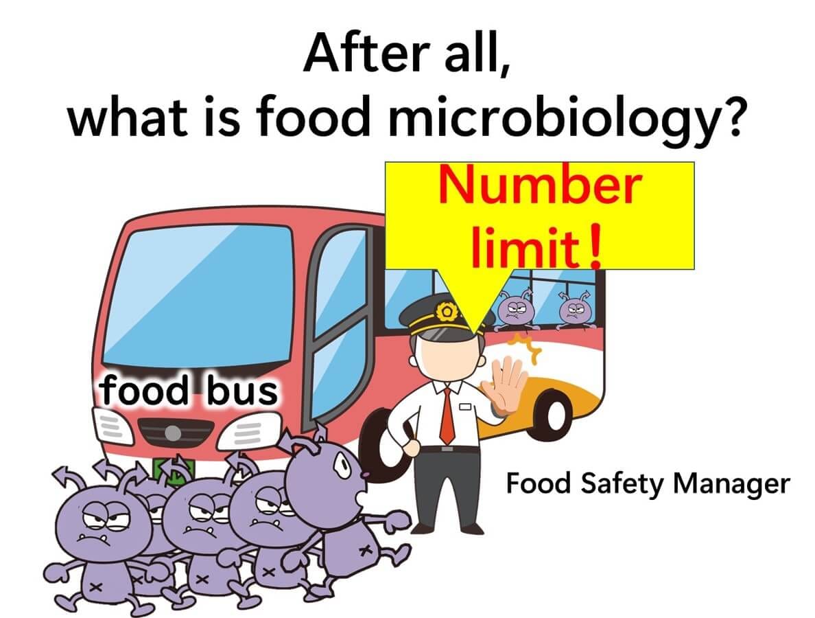 In essence, food microbiology can be defined as the study of preventing microorganisms from hitching a ride on the food bus. The aim is to keep our food safe and free from harmful bacteria.