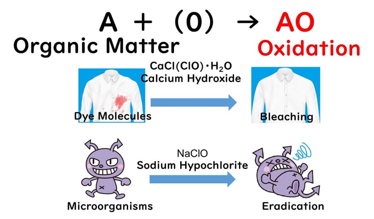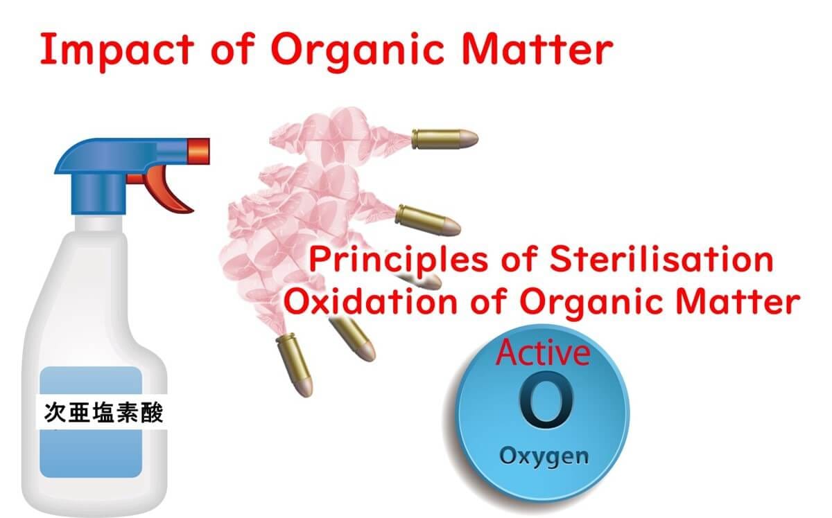 If organic matter is in the vicinity, it gets oxidized too. Without thorough cleaning to remove dirt and grime, the disinfecting power of sodium hypochlorite could be gobbled up by organic matter.