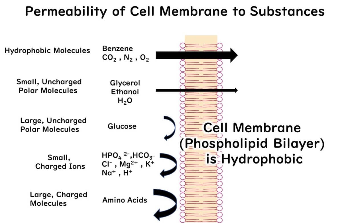 Polar molecules generally get a thumbs down from the hydrophobic (lipid bilayer) doorman. However, if these polar molecules are small enough, they might sneak in. Water molecules, for example.