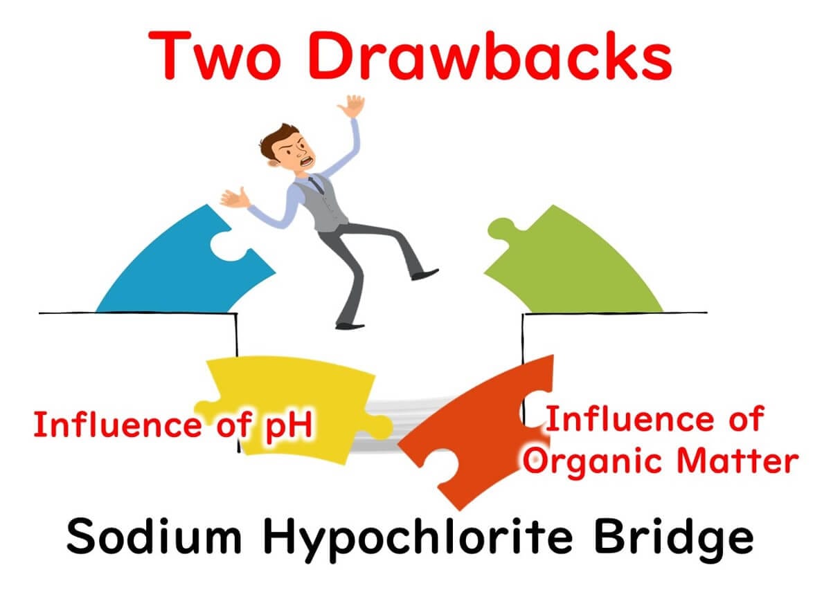Despite its widespread use in food factories worldwide for its simplicity and cost-effectiveness, sodium hypochlorite is not without its flaws. Its two main drawbacks are 1) its susceptibility to pH changes and 2) its vulnerability to organic matter. The next section will outline disinfectants that overcome these shortcomings of sodium hypochlorite.