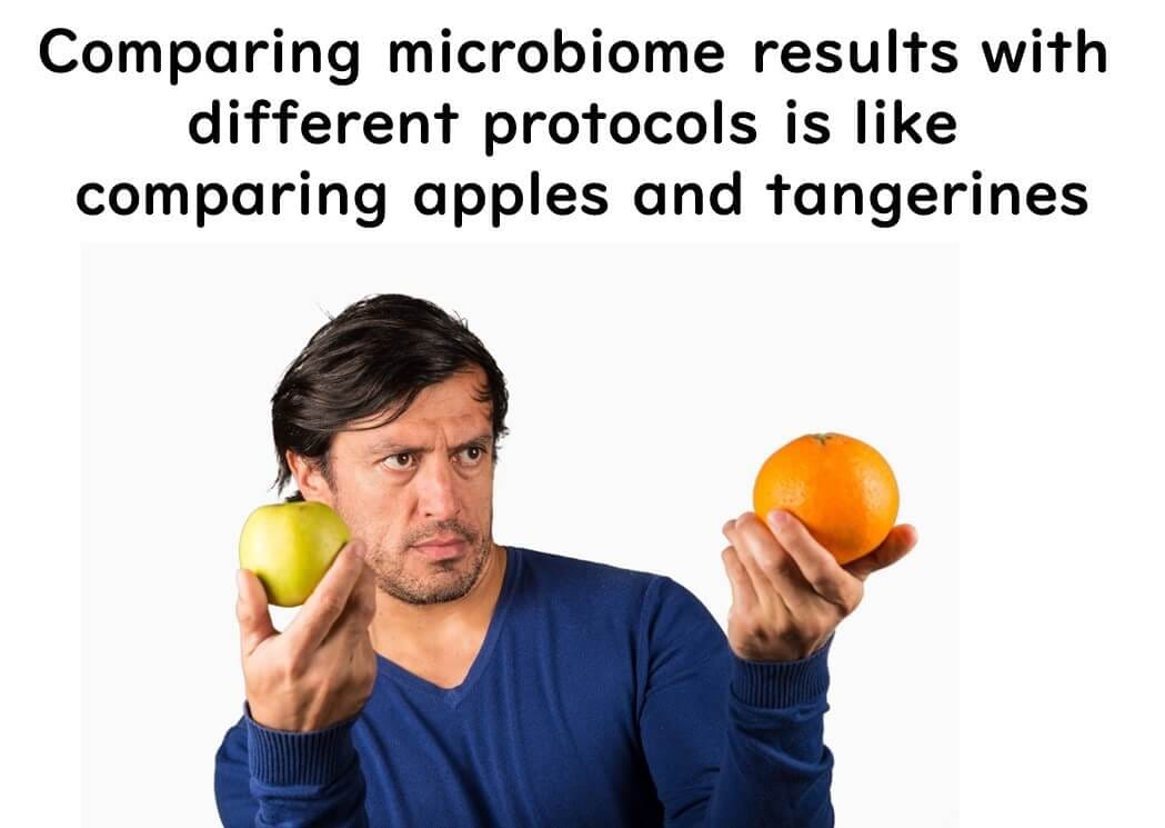 Studies indicate that comparing microbial sequencing results across different protocols is analogous to comparing "apples and oranges"4)—the data may appear similar but originate from fundamentally different methodologies.
