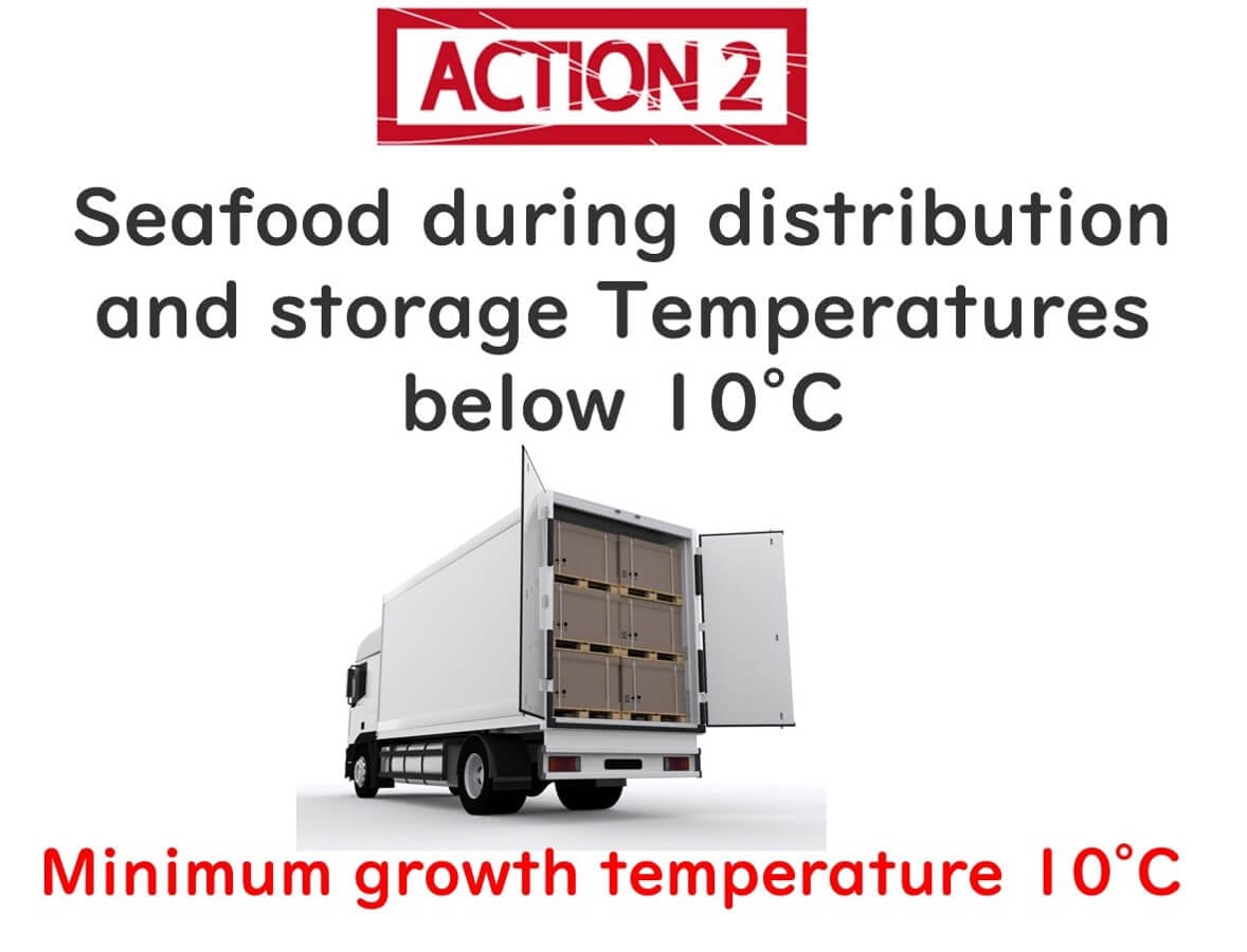 Strict Storage Temperatures: Originally, 4°C was proposed as the ideal storage temperature for seafood, but due to practical challenges in distribution, the regulation allowed storage at 10°C. While Vibrio parahaemolyticus can still grow at this temperature, it does so at a slower rate, which is acceptable for seafood consumed within 48 hours. However, storing at 4°C is still recommended whenever possible.
