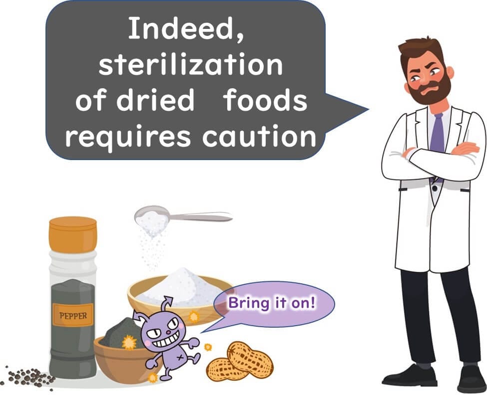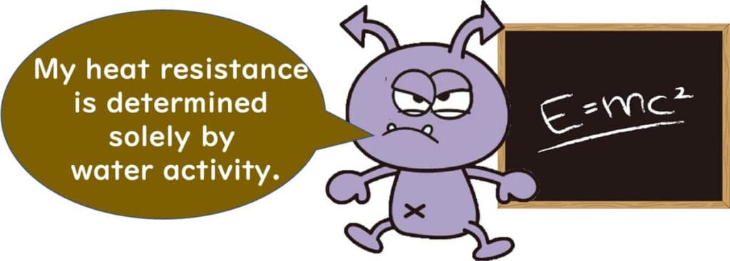 As discussed in this article, microorganisms exhibit significantly increased heat resistance in low-water-activity environments during heat sterilisation. Therefore, when heating dry or low-water-activity foods, care must be taken as the D-values obtained from liquid medium heating experiments may not be directly applicable. This necessitates heightened attention to ensure effective sterilisation without underestimating the resilience of these microbes.